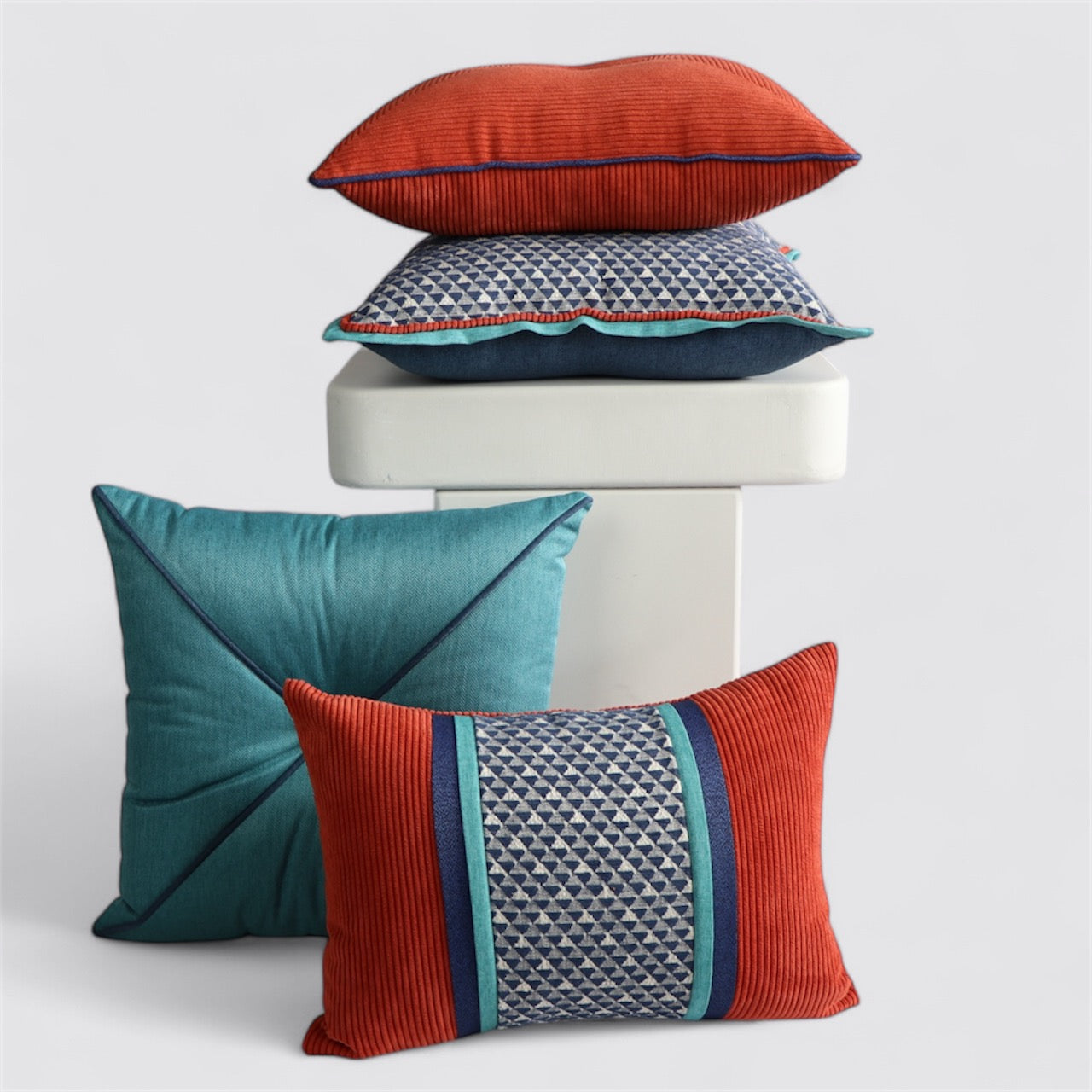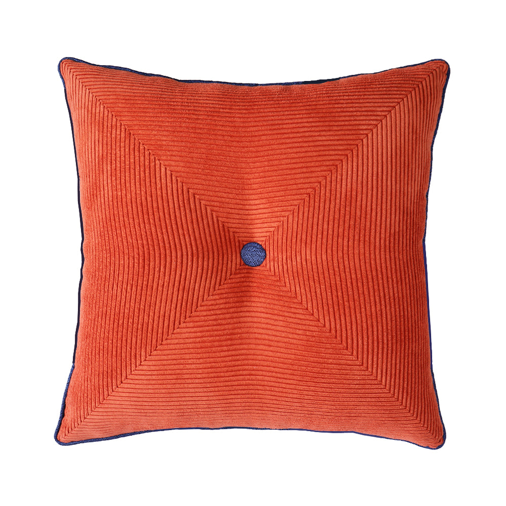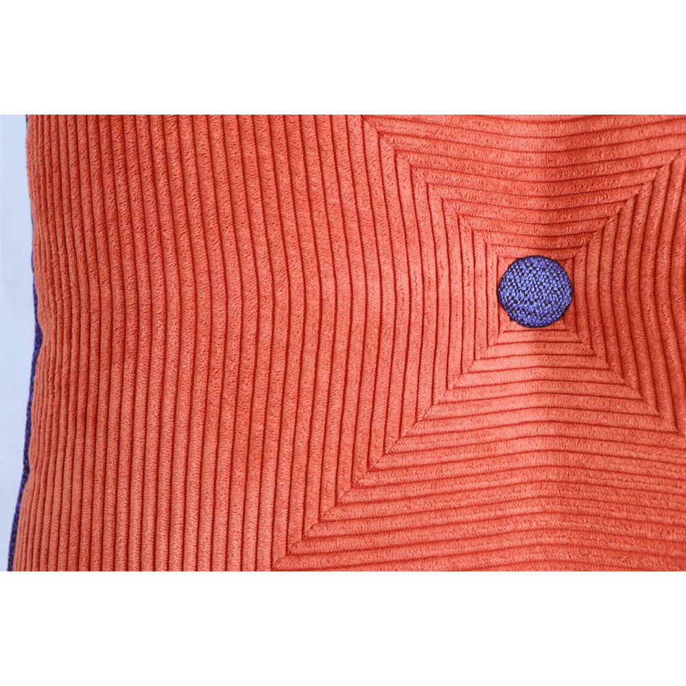 Kendinden çizgili mercan kadife, mavi fitilli be düğmeli dekoratif yastık