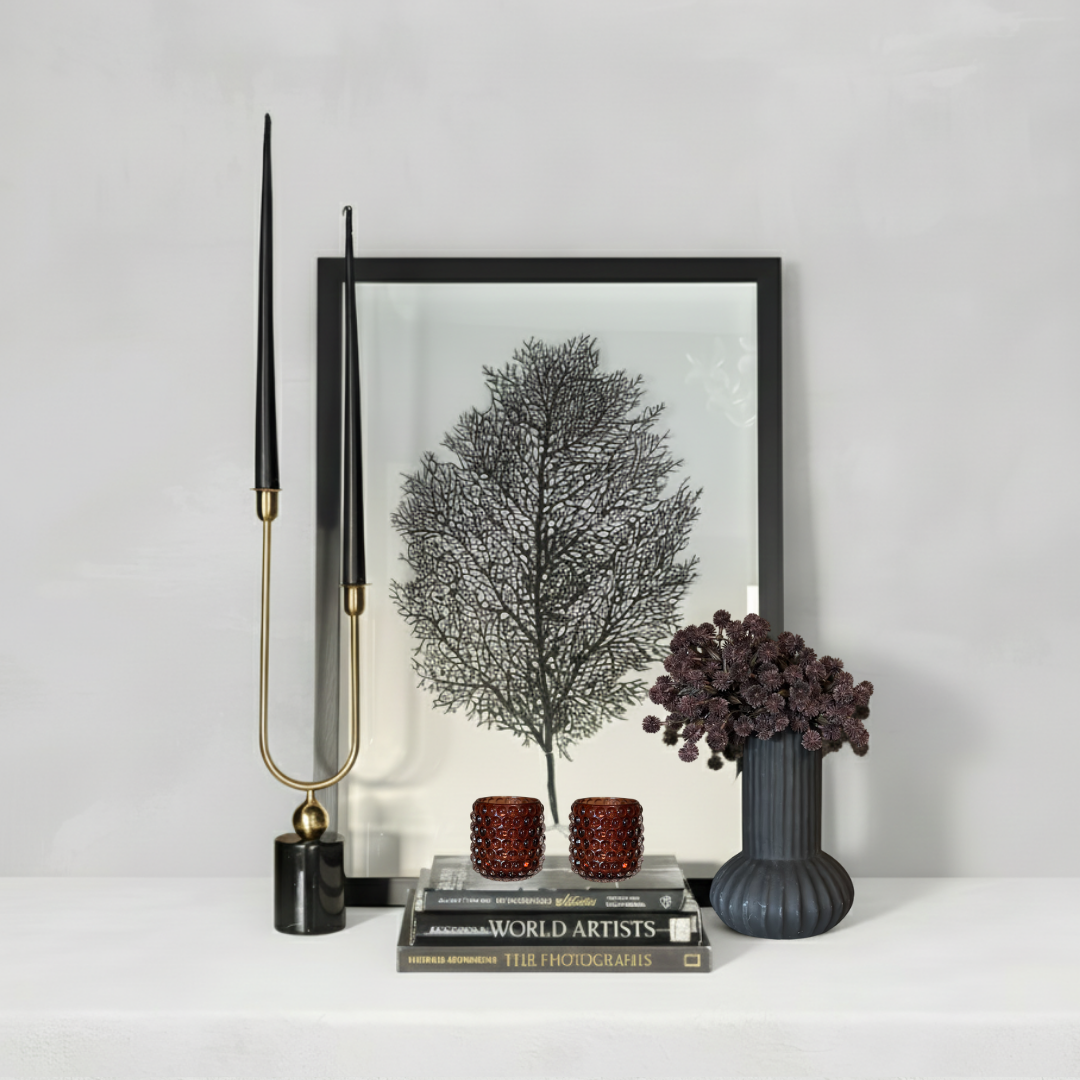 4- Siyah Vazo ve Yapay Bitkiler (2 Adet)