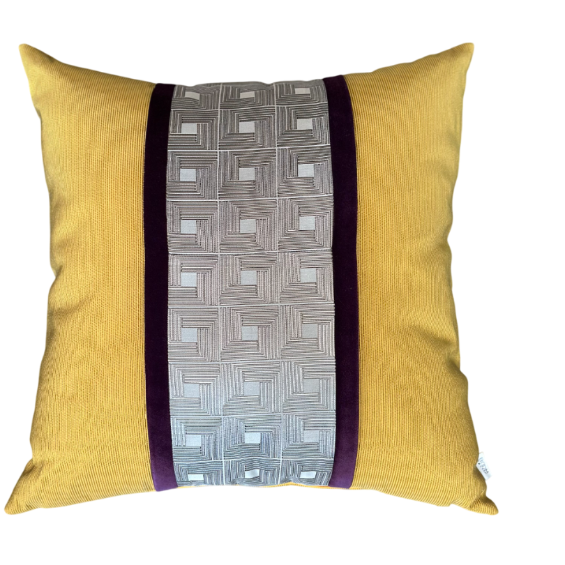 ORTASI GEOMETRİK DESENLİ BANTLI KARE YASTIK